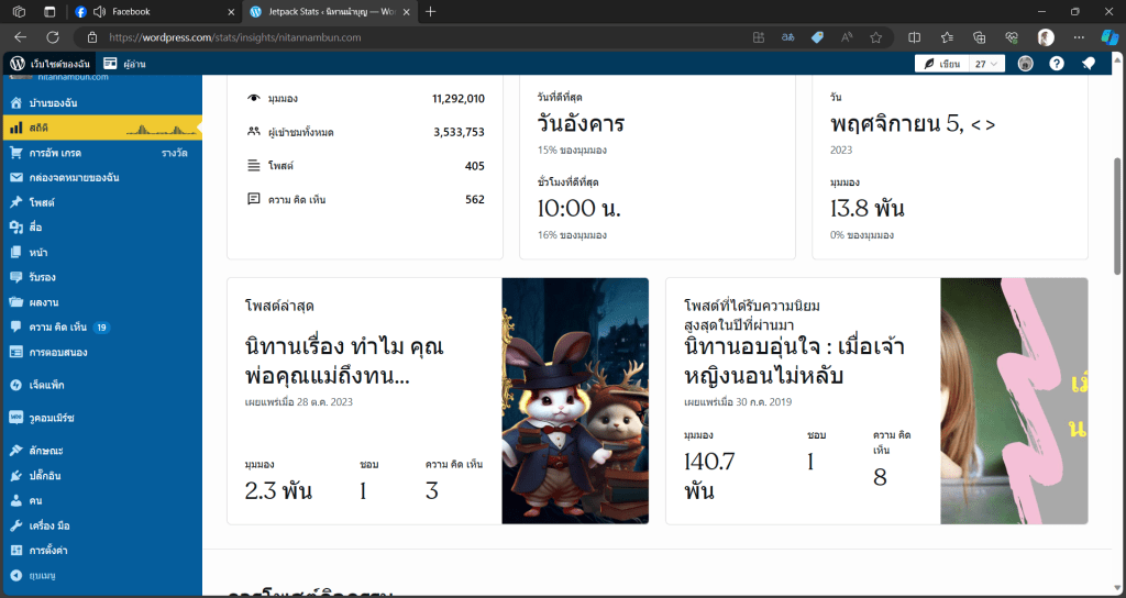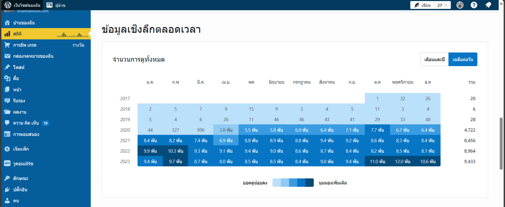 -เว็บไซต์นิทานนำบุญเกิดขึ้นในปีค.ศ. 2017 หรือ พ.ศ.2560 เท่ากับทำมาแล้ว 6 ปีเศษ ยอดการรับชมเป็นไปตามภาพสถิติ ต่อไปนี้