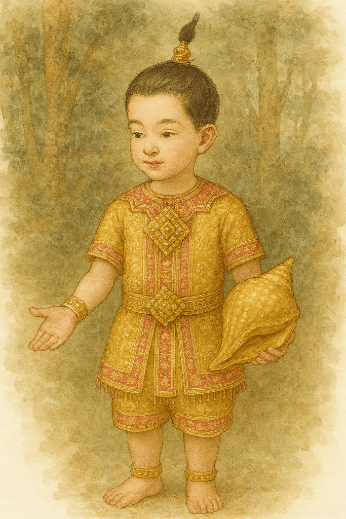 The golden conch itself carries deep cultural meaning in Thailand. Used in sacred ceremonies and symbolizing purity and blessing, it transforms in this tale into a vessel of hope and divine protection. For international readers, this folktale offers not only a moving narrative, but also a window into Thai values, palace life, and the enduring strength of a mother’s love.